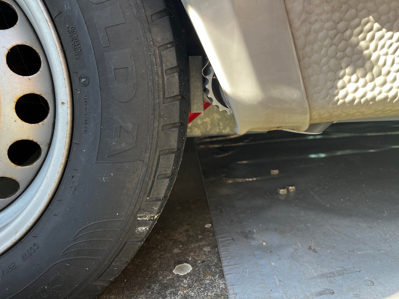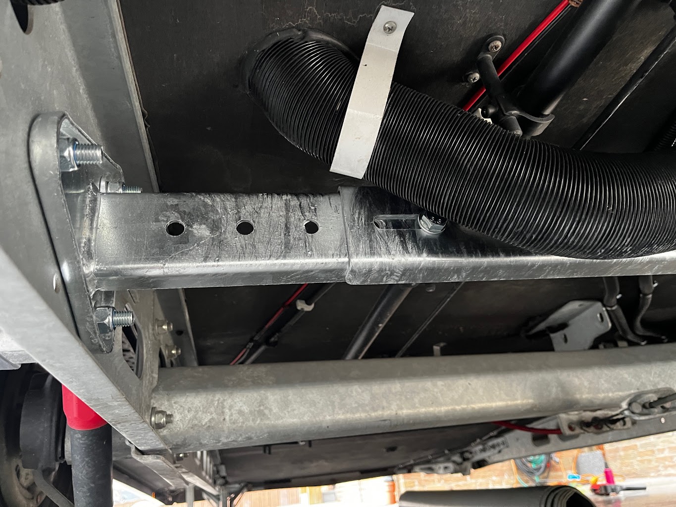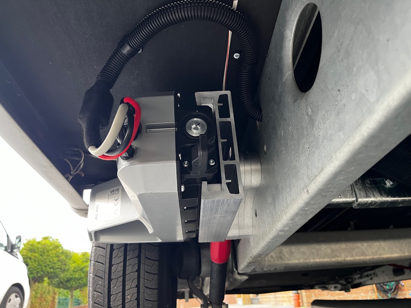 Hiya Jorg Many thanks for you professional advice about checking for heating pipes etc. where the mover is to be sited. There is a drain pipe for the Alde heating situated just in front of the wheel that can only be seen from underneath the caravan. At first glance it would appear it is not possible to fit Al-Ko Mammut M20 to a 2012 Swift Conqueror 565. This is not true. The drain pipe can be simply be pushed back inside and the hole covered with an air vent grill or blanked of completely. If draining of the Alde is required the drain pipe (now inside) can be drained by inserting a tube (20cm) long into the end of the pipe and taking it outside through the existing air vent close by. OK you might get a few drops of water inside the caravan when doing it but it is not something you every day. I do not remember the last time I drained the central heating system in my house so I am not all that worried about it. Please find the attached photos that I hope may be of use if you in the future. Kind regards Rod K.
